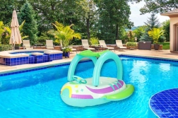 Praktický kryt chrání před sluncem a umožňuje delší, bezpečnější hraní ve vodě bez přehřívání.