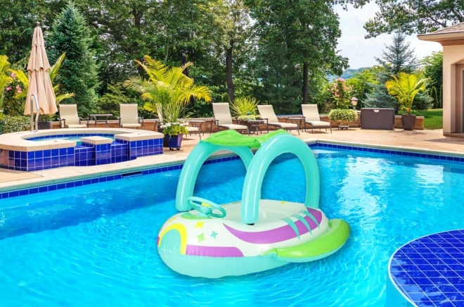 Udělejte z letních dnů nezapomenutelnou zábavu! Toto dětské nafukovací plavidlo s pohodlným sedátkem, stříškou proti slunci a hracím volantem poskytne malým vodomilům bezpečné a pohodlné dovádění u bazénu i na pláži. Díky ochrannému krytu, stabilní konstrukci z PVC a max. nosnosti 45 kg je ideální pro děti od 3 let.
