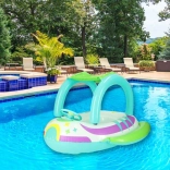 Nafukovací ponton BESTWAY v hravém „kosmickém“ designu promění každé koupání v dobrodružství. Stříška zajistí účinnou ochranu před sluncem a měkké dno se sedátkem přinese maximální komfort při hraní i odpočinku. Volant podněcuje fantazii a rozvíjí motoriku.
