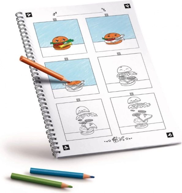 S touto kreativní sadou děti jednoduše pochopí, jak funguje animace po snímcích. Nejprve vybarví šablony, kde se krok za krokem mění poloha objektů vůči pevnému pozadí, poté v aplikaci pořídí snímky a zvolí rychlost přehrávání. Výsledek? Vlastní krátký film, který lze uložit a sdílet s kamarády.