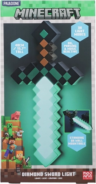 Přineste do svého interiéru herní atmosféru s tímto Minecraft Světlem Diamond Sword. Tento světelný meč nabízí tři různé režimy osvětlení: neustálé zapnutí, prolínání a hudebně reaktivní mód. Skvělý pro večerní zábavu nebo jako stylová dekorace pro fanoušky Minecraft. S rozměrem 40 cm na výšku se dá snadno umístit na stůl nebo připevnit na stěnu.