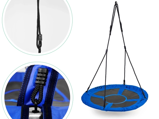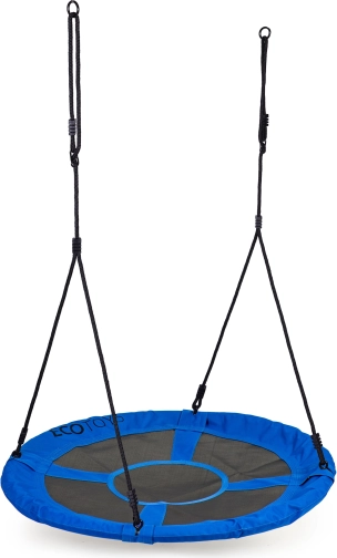 Hnízdová houpačka ECOTOYS v modré barvě je skvělou volbou pro zahradu, dvůr i dětské hřiště. Prostorné sedátko s průměrem 100 cm a odolný polyester odolávají povětrnosti i opotřebení, zatímco rám s měkkým pěnovým lemem zvyšuje bezpečí dětí. Díky výškovému nastavení 140–190 cm houpačku snadno přizpůsobíte místu i věku uživatelů.