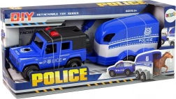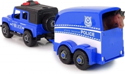 Set je ideální pro malé fanoušky policejních zásahů. Terénní auto bezpečně táhne přívěs pro koně, který má otevírací zadní klapu pro pohodlné naložení i vyložení. Díky šroubkům a přiloženému šroubováku lze vůz rozebírat a skládat, což rozvíjí dovednosti a zábavnou formou učí technickému myšlení.