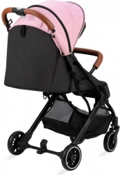 Bezpečnost zajišťují pětibodové pásy, centrální nožní brzda, dvojitá pojistka proti samovolnému složení/rozložení i reflexní prvky. Jízda je plynulá díky odpružení všech čtyř kol a polyuretanovým pneumatikám odolným proti defektu. Praktický košík pojme nákup i potřeby pro dítě, zatímco odnímatelné madlo a široký nástupní schůdek usnadní nastupování.