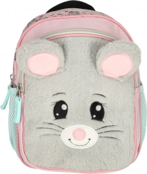 Přední část batůžku je potažena měkkým umělým kožíškem s vyšívanou tvářičkou myšky – působí jako oblíbená plyšová hračka a děti si ho okamžitě zamilují.