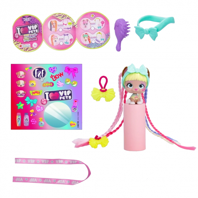 VIP Pets Mini Fans Bow Power je kolekce, která přináší 8 různých mini štěňátek, každé s naprosto unikátními vlasovými doplňky. Tato roztomilá štěňátka následují nejnovější trend Bow Power. Uvnitř balení naleznete: