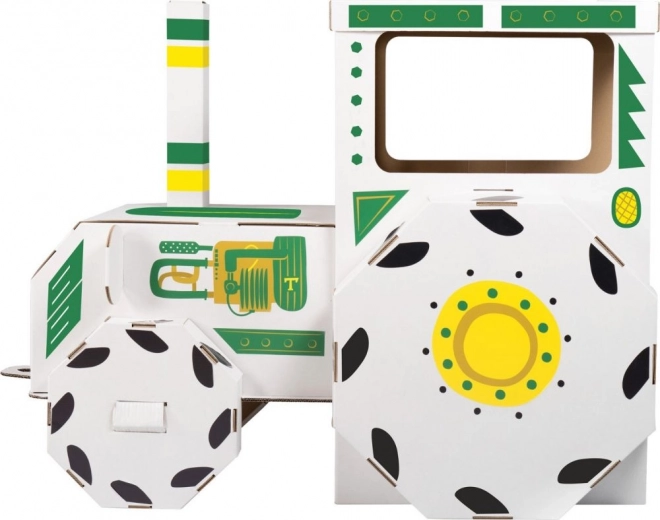 Tento dětský kartonový traktor podporuje fantazii, společnou hru i rozvoj jemné motoriky. Lehká, ale pevná konstrukce z kartonu je bezpečná pro domácí použití a připravená k rychlému složení. Neutrální bílý povrch se zeleno‑žlutými detaily působí hravě a snadno zapadne do každého dětského pokoje.