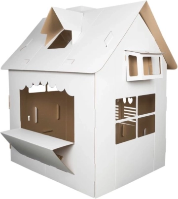 Domeček z pevného kartonu složíte během pár minut bez nářadí. Lehká konstrukce umožňuje snadné přenášení i uskladnění.