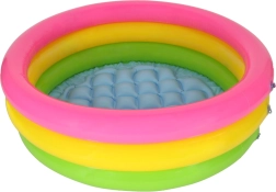 Barevný dětský bazének INTEX s průměrem 61 cm je ideální pro první vodní radovánky doma i na zahradě. Tři výrazné prstence a měkké nafukovací dno zajistí pohodlí a bezpečí, zatímco živé barvy lákají ke hře. Lehký a skladný, z odolného PVC, vhodný pro děti 1–3 roky.