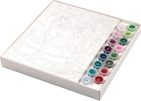 Objevte relax a kreativitu s sadou malování podle čísel – jednorožec. Ideální pro začátečníky i pokročilé: stačí nanést správnou barvu na očíslované pole a snadno vytvoříte vlastní obraz s magickým motivem jednorožce.