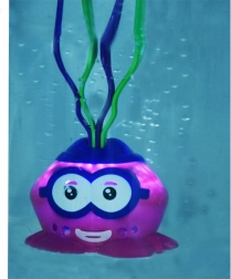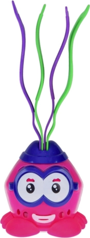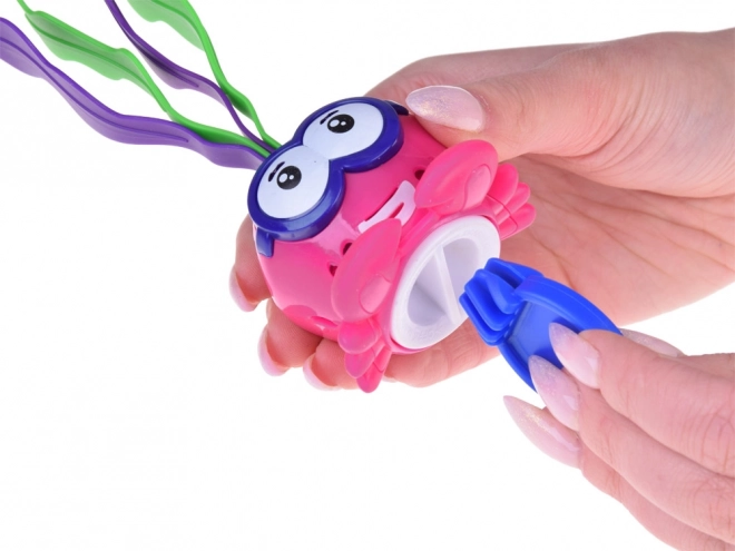 Zábavný krab svými výraznými barvami přitahuje pozornost dětí při hře ve vodě.
