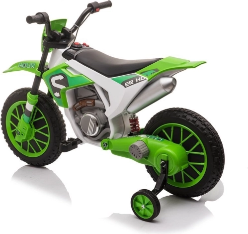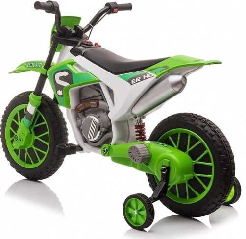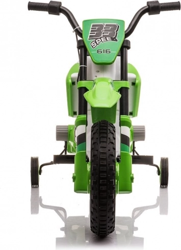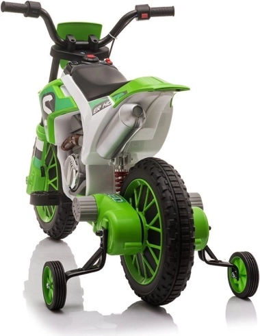 Tato zelená dětská elektrická motorka je navržena tak, aby dětem poskytla bezpečnou a radostnou jízdu. Robustní konstrukce, široká kola a postranní stabilizátory pomáhají udržet jistotu a stabilitu i úplným začátečníkům. Realistické detaily jako řídítka, sedlo a sportovní design přináší autentický zážitek z jízdy.