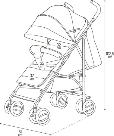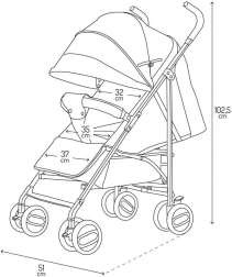 Kočárek je vybaven manévrovatelnými koly z pěny EVA, která jsou odolná proti propíchnutí, aretací předních kol a reflexními prvky pro vyšší viditelnost. Nastavitelné opěradlo a opěrka nohou zajistí pohodlí od 6 měsíců až do 15 kg. Praktická možnost odejmout madlo z jedné strany usnadňuje usazování dítěte.