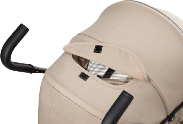 Stříška s okénkem pro dohled, možnost odejmout madlo z jedné strany, reflexní prvky a bohaté příslušenství: taška, pláštěnka a moskytiéra.