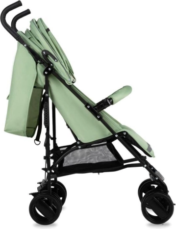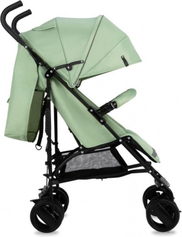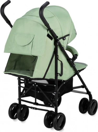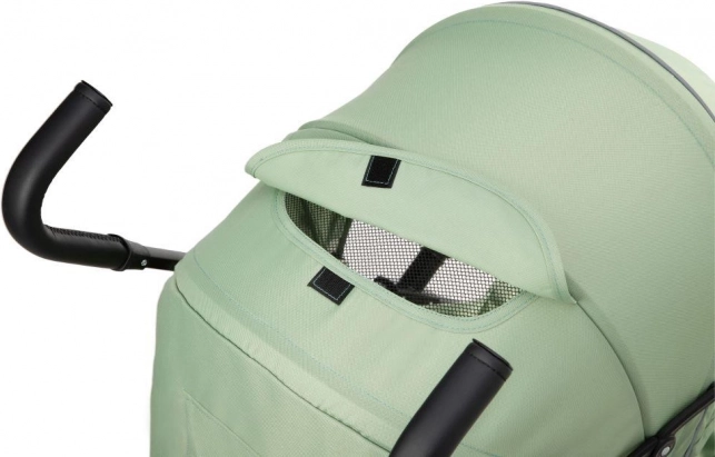 Nastavitelné opěradlo a opěrka nohou, stříška s okénkem a možnost odejmout madlo z jedné strany usnadní usazení i dohled nad dítětem.
