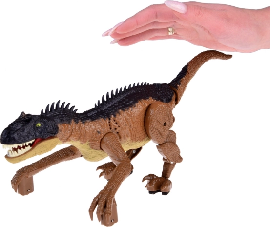 Dinosaurus je vybaven pohyblivými klouby a vydává realistické zvuky, což zajišťuje zábavnou a autentickou hru.