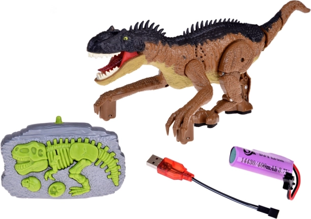 Dinosaurus funguje na dobíjecí baterii, která je součástí balení. Pro dálkové ovládání jsou potřeba 2 baterie typu AA (nejsou součástí balení). Dinosaurus má pohyblivé končetiny, což mu umožňuje realistické pohyby.