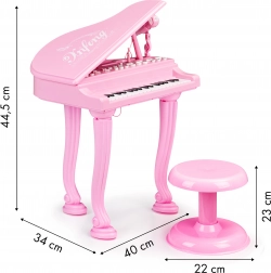 Užijte si nezapomenutelnou zábavu s tímto růžovým pianem, které vnese do vašeho domova hudební atmosféru. Piano je navrženo tak, aby dětem umožnilo komponovat vlastní písně a poskytuje realistický vzhled skutečného nástroje. Součástí setu je stolička, která zajišťuje pohodlí při hře pro vašeho malého umělce.