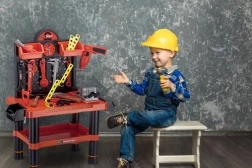 Pro děti od 3 let, vyroben z bezpečného, odolného plastu s konstrukcí přátelskou dětem. Obsahuje 52 doplňků pro malé kutily a rozvíjí kreativitu, představivost a manuální dovednosti.