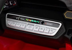 Přehrávejte oblíbené písničky přes USB nebo Bluetooth, k dispozici jsou i předinstalované melodie a klakson na volantu pro ještě zábavnější jízdu.