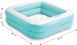 Nafukovací bazén je praktický a lehký (1 kg), snadno přenosný a díky kompaktním rozměrům se vejde téměř kamkoli. Vyroben z odolného PVC materiálu s měkkým dnem.