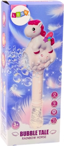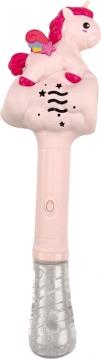 Růžová bublinková hůlka s motivem jednorožce promění každé odpoledne v pohádkovou podívanou. Stylový design s hvězdičkovými otvory a průhlednou rukojetí láká k hraní a podporuje dětskou fantazii. Součástí je také láhev na bublinkovou tekutinu, kterou lze snadno připevnit ze spodní strany hůlky pro pohodlné používání.