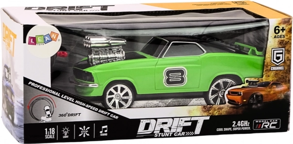 Užijte si energické klouzání v ostrých zatáčkách, rychlé přesměrování a efektní piruety – to vše díky konstrukci pro plynulý drift a stabilnímu řízení. Auto zaujme výrazným zeleným vzhledem se sportovními detaily a efektními LED světly, které dodají každé jízdě atmosféru.