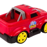 Robustní plastové provedení, výrazná červená karoserie a žlutá kola zaujmou děti a vydrží každodenní hraní.