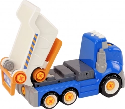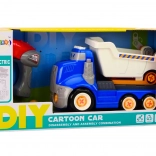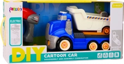 Modrá kreslená vyklápěcí tatrovka k montování DIY je ideální volbou pro malé mechaniky. Díky přiložené elektrické vrtačce, šroubováku, klíči a výměnným břitům děti snadno pochopí, jak je vůz složen, a naučí se základům konstrukce. Sklápěcí korba přidává hře na autentičnosti a podporuje fantazijní hru.