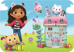 Dřevěné puzzle s motivem Veselé Gabby a jejích přátel přenášejí děti do pohádky Koci domek Gabi. Tyto puzzle mají: