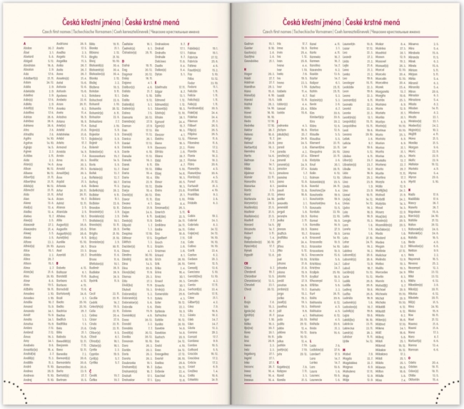 • Rozšířený seznam českých jmen, mapa České a Slovenské republiky a prostor pro osobní údaje.