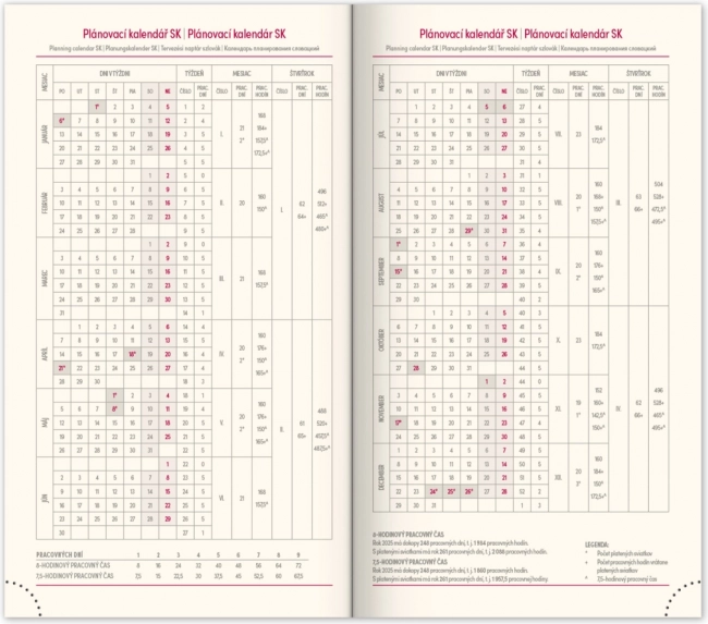 • Roční plánovací kalendář pro období 2025–2026.