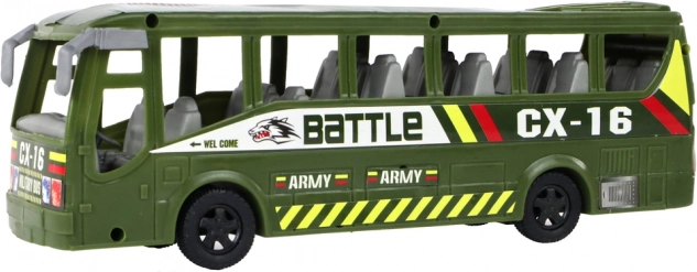 Odolný zelený autobus/transportér s armádními nápisy rozšíří možnosti hry na zemi. Ideální pro přepravu jednotek a vybavení.