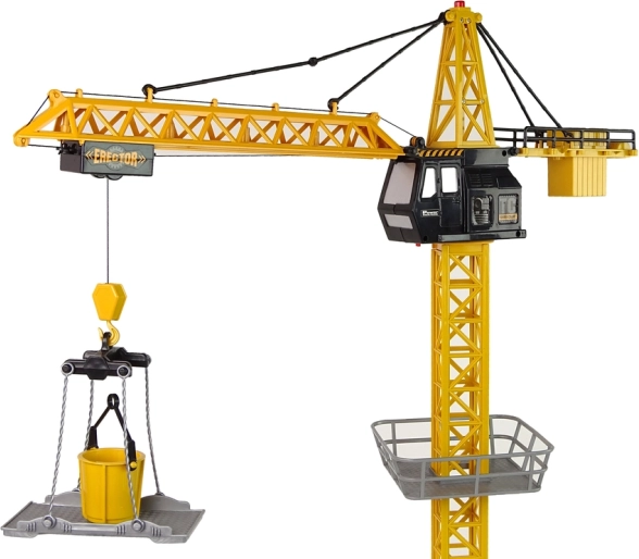Tento detailně zpracovaný zdaleka ovládaný věžový jeřáb je ideální pro děti, které milují stavebnice a techniku. Robustní základna zajišťuje stabilitu, rameno o délce 60 cm přenese menší předměty pomocí háku, vědra či platformy. Ovládání je intuitivní – jeřáb zvedá a spouští břemena a otáčí se do stran, přičemž poloha háku na rameni se nastavuje ručně.