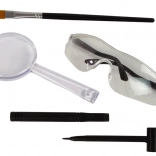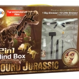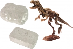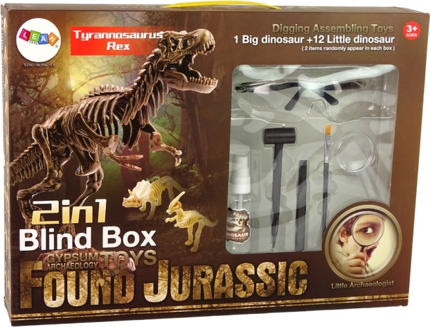 - 2 sádrové bloky, ochranné plastové brýle, dláto, kladívko, štěteček, rozprašovač, 1 velká kostra T‑Rex, 2 malé kostry dinosaurů