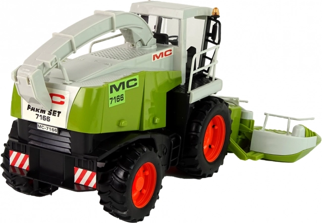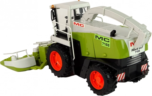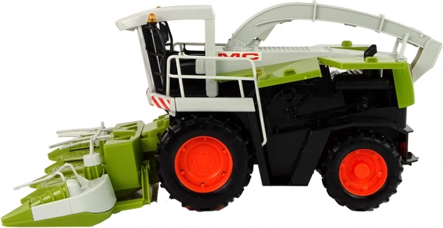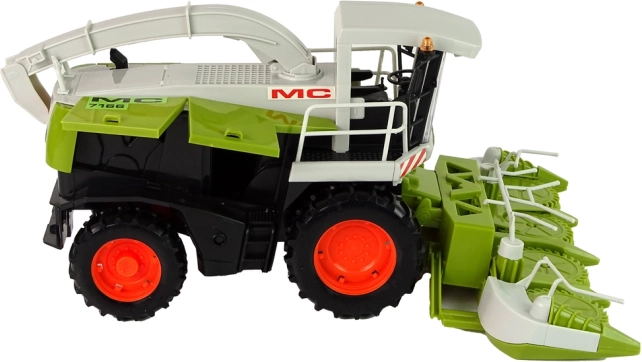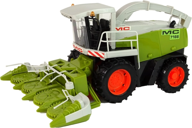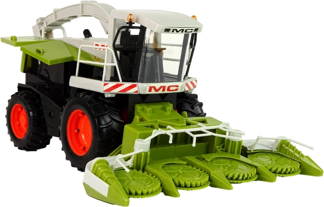 Velký zelený kombajn nabízí realistický vzhled s pohyblivými částmi jako volantem nebo žacím ústrojím, které simulují skutečnou práci na poli. Otevírací prvky umožňují předstírat opravy a servis vozidla, zatímco prostorný interiér umožňuje ukládat drobnosti nebo hračky.