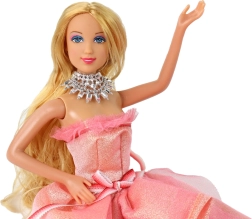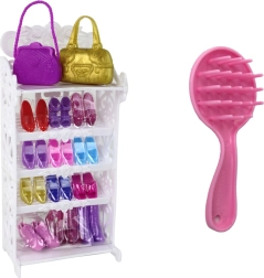 Sada obsahuje nejen panenku, ale i elegantní bílou skříň s 12 páry střevíčků na výběr. Panenka má k dispozici 5 různých večerních šatů v bílé, fialové, tmavě růžové, modré a světle růžové barvě s třpytivými prvky. Dále jsou součástí balení 2 páry stříbrných náušnic, 2 kabelky (fialová a zlatá), 3 náhrdelníky, sponka do vlasů a kartáč na vlasy.