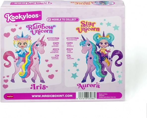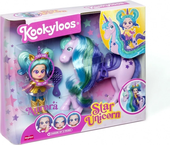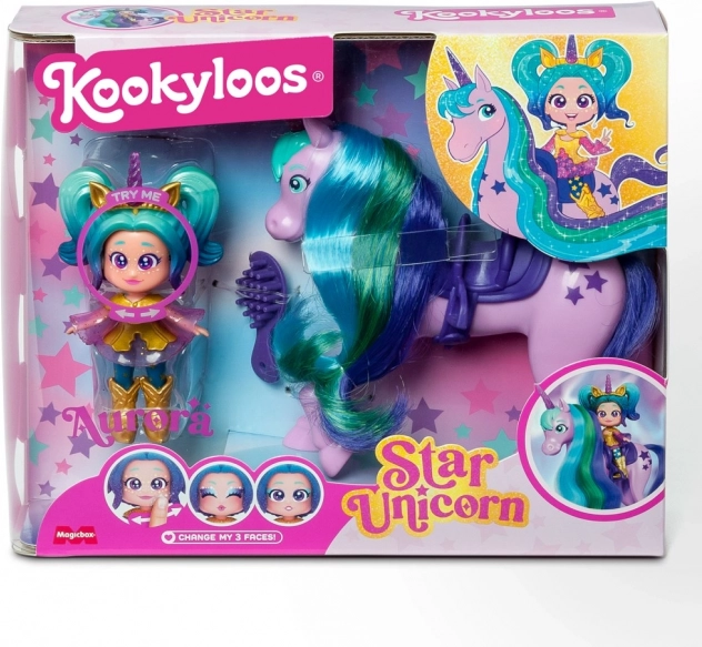 Objevte Auroru a jejího jednorožce Star – stylovou dvojici, která rozzáří každý dětský pokoj. Jednorožcova dlouhá, barevná hříva ze skutečných vlasů vybízí k česání a tvorbě účesů, zatímco panenka KookyLoos zvládne během chvilky změnit výraz obličeje jediným kliknutím. Díky kombinovatelným doplňkům si děti užijí nekonečné možnosti stylování a fantazie.