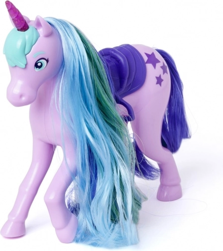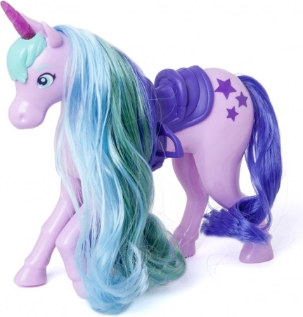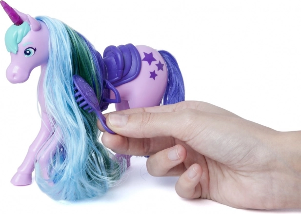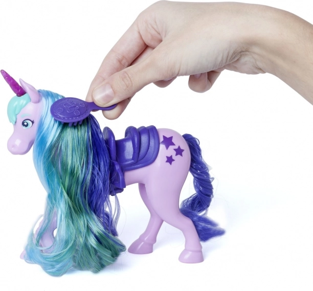 Dlouhá, vícebarevná hříva jednorožce Star se dá snadno česat přiloženým kartáčem a upravovat do nových účesů každý den.