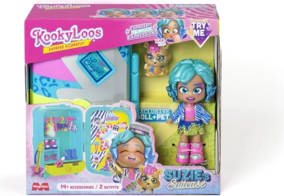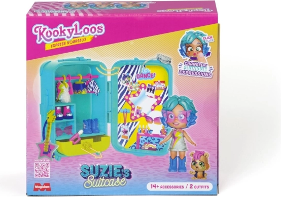 Objevte kouzelný svět módy s panenkou KookyLoos Suzie Q v praktickém kufříku. Set nabízí 2 stylové outfity, více než 13 doplňků, roztomilé zvířátko a unikátní funkci 3 výrazy obličeje na jedno kliknutí. Vše snadno zabalíte do přenosného kufříku a můžete si hrát kdekoli.