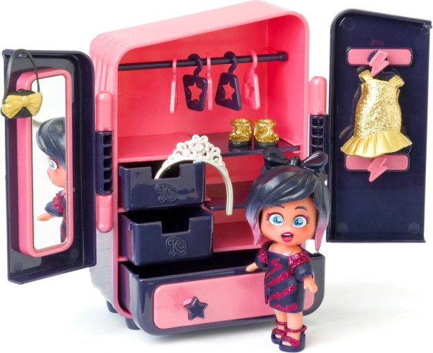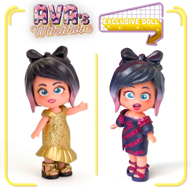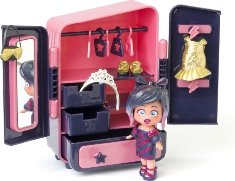 Panenka Ava miluje třpytivé outfity, které jsou součástí balení. Součástí hracího setu je také praktická šatní skříň, kam můžete ukládat obleky a doplňky. Tento set nabízí široké možnosti pro kreativní a imaginativní hru.