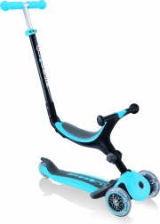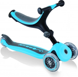 Koloběžka Globber Go Up skládací Plus je ideální pro děti od 15 měsíců do 7 let. Užijte si pohodlnou a bezpečnou jízdu díky odnímatelné opěrce nohou a měkkému sedadlu, které lze nastavit pomocí bočního knoflíku ve dvou výškách.