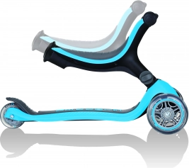 Všestranná koloběžka určená pro malé děti. S patentovaným designem, který se přizpůsobuje věku a potřebám dítěte, přechází z režimu jízdy vsedě na odrážedlo a nakonec na koloběžku.