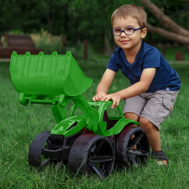 Traktor Maximus je součástí nové série moderních hraček budoucnosti. Tento traktor ve výrazné zelené barvě vyniká moderním designem, pevnou, avšak lehkou konstrukcí a nádherně zpracovanými detaily. Je navržen k tomu, aby poskytoval realistickou a různorodou zábavu, ať už doma, na písku nebo v zahradě.