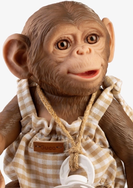 Roztomilé a věrohodně zpracované opičí miminko s celovinylovým tělem o velikosti 32 cm potěší malé i velké milovníky zvířátek. Nabízí realistické detaily, je polohovací a díky použitému materiálu také vhodné ke koupání (s opatrností na řasy). Ručně vyrobeno ve Španělsku, dodáváno v dárkové krabici.