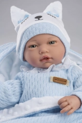 Tato realistická zvuková panenka má měkké látkové tělo pro příjemné objímání a hravé momenty. Je vybavena klouby na rukou a nohou, které umožňují polohování a sezení, což podporuje pestřejší hraní. Panenka přichází s dudlíkem jako doplňkem a je ručně vyrobena ve Španělsku, což dodává pocit exkluzivity.
