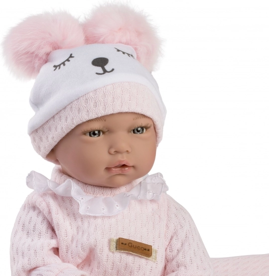 Panenka Guca Andrea je jako skutečné miminko – má měkké látkové tělíčko, příjemně se nosí a po stisknutí na hrudi vydává reálný zvuk smějícího se dítěte. Ruce a nohy jsou uchyceny kloubem, takže je panenka polohovací a zvládne i samostatně sedět. Součástí je dudlík jako dekorativní doplněk a vše je stylově zabaleno v dárkové krabici.