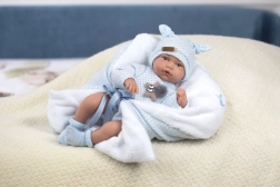 Roztomilá panenka miminko Hugo je ideální pro děti, které si chtějí hrát a pečovat o své vlastní 'miminko'. Panenka po zatlačení na hrudník vydává autentický zvuk smějícího se dítěte. Je vybavena klouby, které umožňují pohyb rukou a nohou, a díky polohovatelnosti může i sedět.