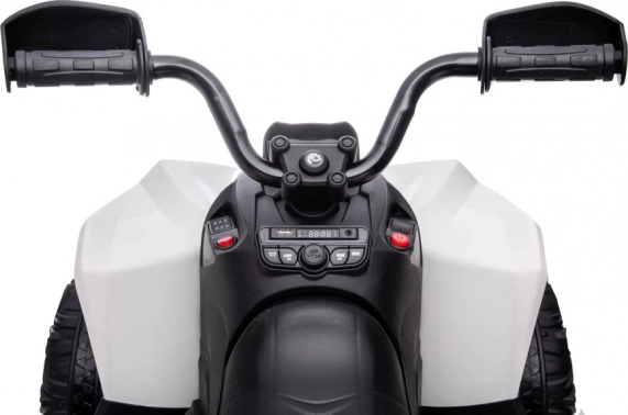 Model v elegantní bílo‑černé kombinaci s žlutým předním chráničem působí sportovně a moderně. Texturované pneumatiky zajišťují lepší trakci a ovladatelnost, zatímco realistické detaily – jako světlomety a ovládací panel – podporují autentický zážitek z jízdy.