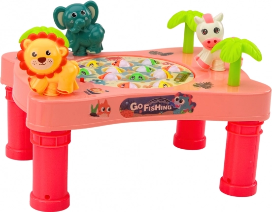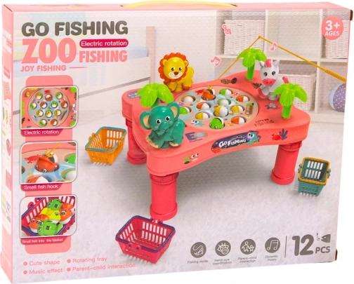 Růžový herní stoleček s tématem „Go Fishing“ promění dětský pokoj v malé akvárium. Otočný talíř s otvírajícími se pusinkami rybiček vytváří dynamickou výzvu, která děti motivuje k přesnému zamíření a rychlé reakci. Díky pestrým barvám, veselým zvířátkům a melodiím si hru zamilují malí i velcí.